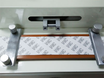 油墨耐摩擦試驗(yàn)機(jī)試驗(yàn)步驟圖解取摩擦體用白色道林紙(白色A4紙)長(zhǎng)寬為50㎜×200㎜后,固定于上摩擦體(黑色橡膠體上)。...