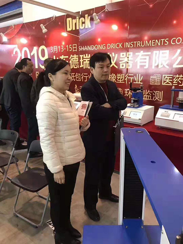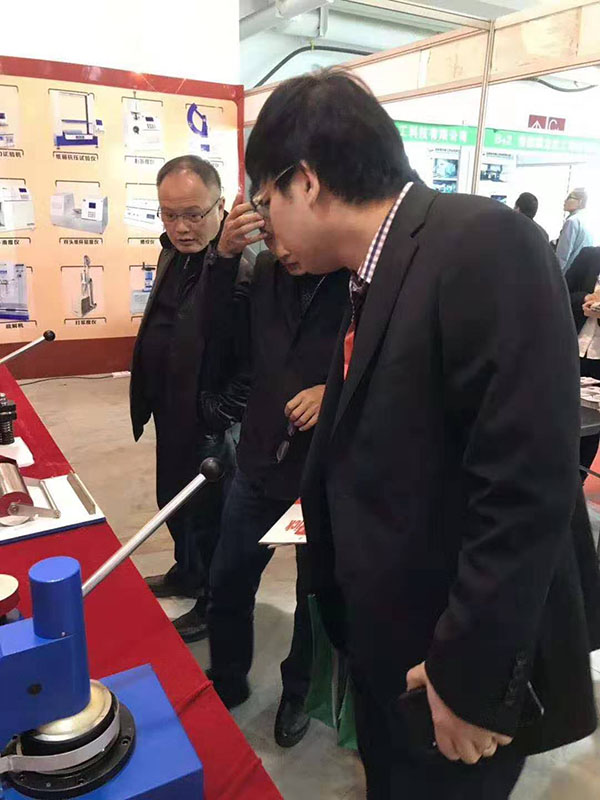 上午九點,一曲歡快的《好運來》為展會開幕式增添了濃墨重彩的一筆。本次展會,我們展出的產(chǎn)品有:電子拉力試驗機(jī)、壓縮儀、耐破度儀、測厚儀、熱封儀、耐折度儀、戳穿度儀以及各種取樣器。展會開始不久,憑借產(chǎn)品的外觀、性能以及參展人員專業(yè)的產(chǎn)品知識、銷售技能,我們的展臺前來了一波又一波的觀展人員。為企業(yè)帶來了更深層次的潛在客戶。