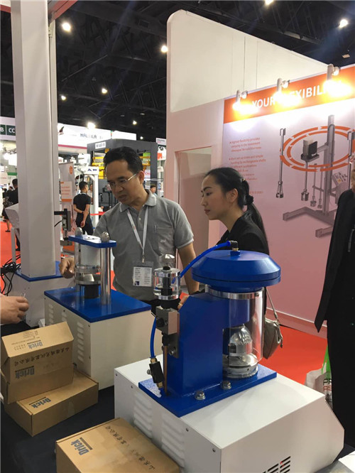 展會第一天,開展不到1小時,來德瑞克展位前參觀咨詢的客戶已經(jīng)是絡(luò)繹不絕。咱們的工作人員耐心細致的為客戶解答產(chǎn)品配置及使用方面的問題。我公司此次攜帶的產(chǎn)品有:拉力機,熱封儀,泄漏與密封強度測試儀,壓縮試驗儀 耐破度儀,柔軟度儀。不少客戶對產(chǎn)品表現(xiàn)出濃厚的興趣,并且與公司達成了合作的意向。